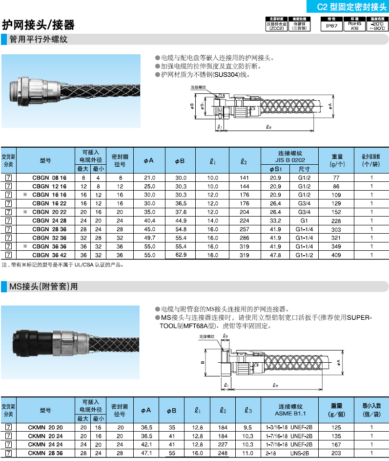 ·電纜與配電盤等嵌入連接用的護網接頭。