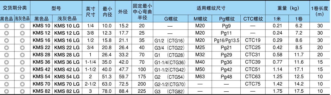 ·KMS型適用于觸油機床周邊、自動化機器等固定配管處。食品工廠、下水處理廠等非觸油場所推薦適用 低價格的 KMV型。