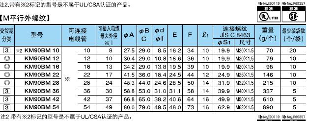 ·表中的[可連接金屬軟管]欄內(nèi)的※號(hào),代表KMS、KMV、KPF、KIC、KIH、KIV、KPBF、KUU、KCS、KMB、KIB、KM、KI。