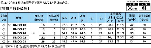 ·表中的[可連接金屬軟管]欄內的※號,代表KMS、KMV、KPF、KIC、KIH、KIV、KPBF、KUU、KCS、KMB、KIB、KM、KI。