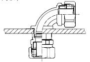 ·金屬軟管90°彎曲、彎曲部固定于6mm厚鋼板用的中繼式90°形連接器。