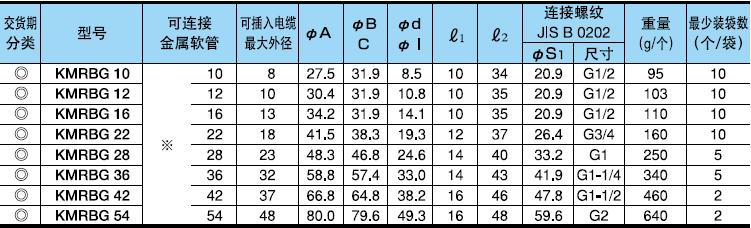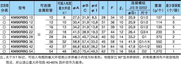 ·表中[可連接金屬軟管]欄內的※號,代表KMS、KMV、KPF、KIC、KIH、KIV、KPBF、KUU、KCS、KMB、KIB、KM、KI。