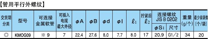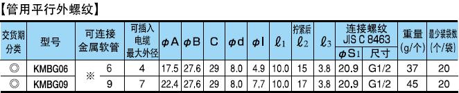 ·表中的[可連接金屬軟管]欄內(nèi)的※號(hào)代表KMS、KI、KM。