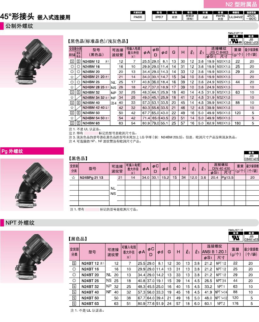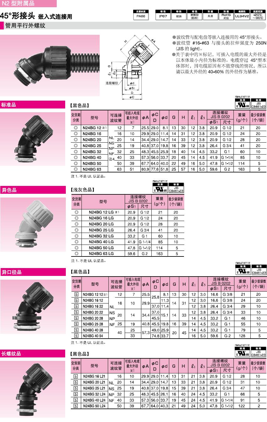 ·關(guān)于表中的※標(biāo)記,可插入電纜的最大外徑是以本體最小內(nèi)徑為標(biāo)準(zhǔn)的。電纜穿過45°型本體部時(shí),因電纜原因有不能穿線的情況,所以請(qǐng)以最大外徑的40-60%的外徑作為基準(zhǔn)。